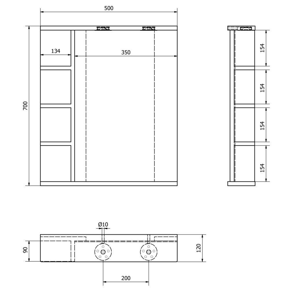KORIN zrcadlo s LED osvětlením a policemi 50x70x12cm