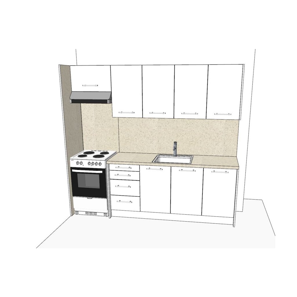 Kuchyň 180 cm pro levé varianty pro samostatně stojící sporák.