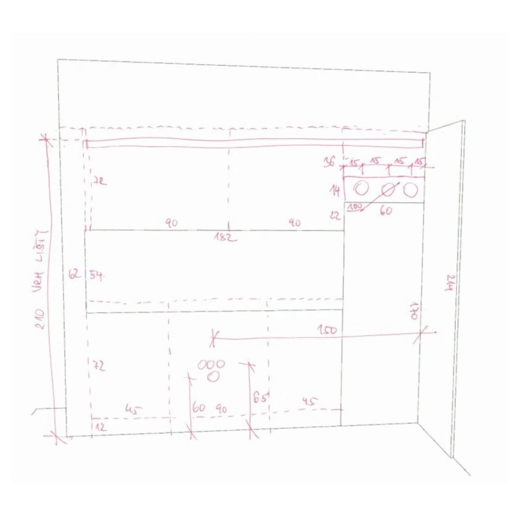Kuchyň 180 cm pro pravé varianty pro samostatně stojící sporák.